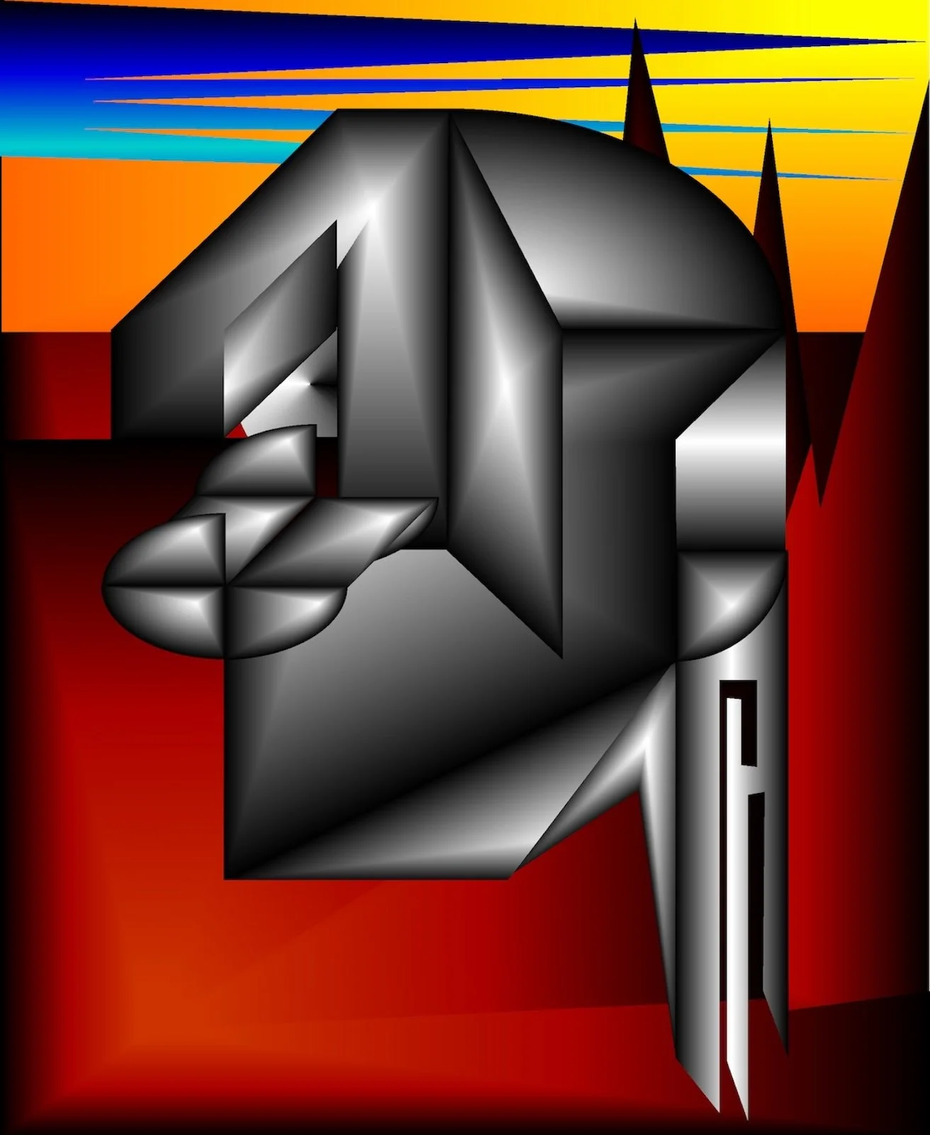 His artistic endeavors are varied. Sculptures range from small, personal objects to large, public pieces in metal, found objects, and wood. Photographs are of the natural and manmade worlds and their abstractions. Digital Art includes Cubist vector drawings, adjusted images, and 3D computer objects.