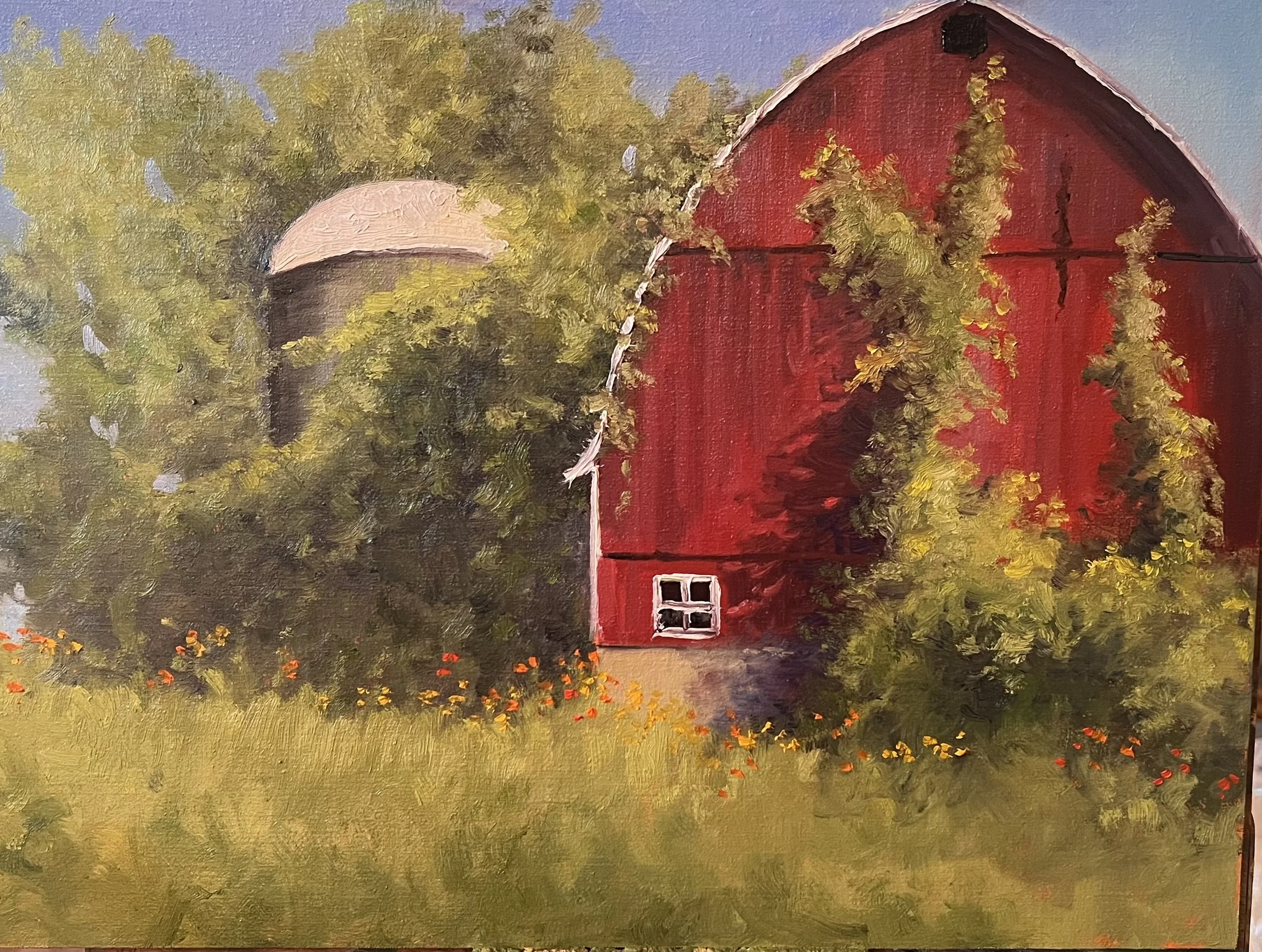 Her art training background started with a solid drawing foundation in charcoal and pastel with instructors at the Edina Art Center in Minnesota. To further her art education, she studied under Joseph Paquet (Plein Air Painters of America) in St. Paul for 12 years and with Jeff Hurinenko for 7 years learning the Old Master’s Danish/Flemish method of oil painting through still life and portrait work. All of these classes involved the experience of “working from life” and plein air (French term of painting outside on location). She still works mostly from life as she enjoys the challenges that come from the experience. One must work quickly outside as the light changes very rapidly, so the approach of working to freeze the light effect and then mass in the bigger shapes allows for finishing a painting in a window of time of 2 –3 hours.